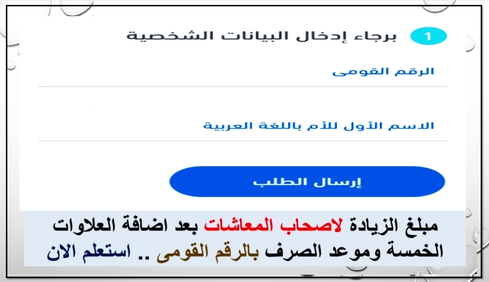 العلاوات الخمس لأصحاب المعاشات شرح تفصيلي للاستعلام بالرقم القومي وإسم الأم