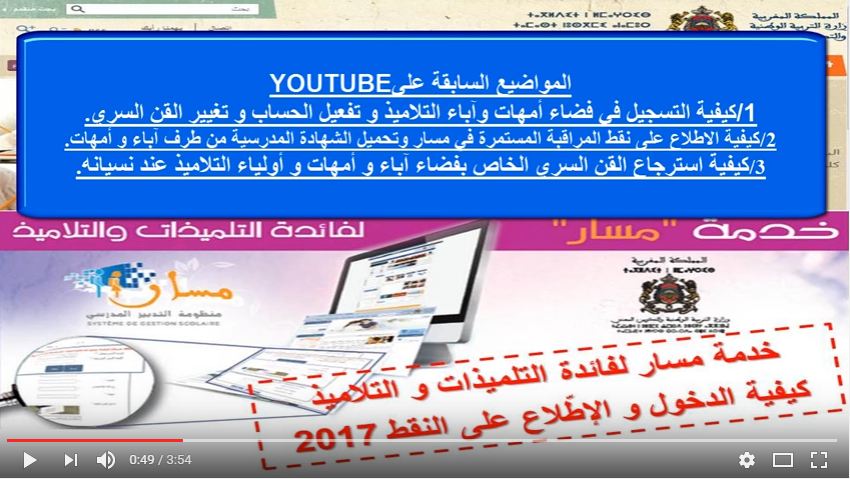 خدمة مسار لفائدة التلميذات و التلاميذ كيفية الدخول و الاط لاع على النقط 2017