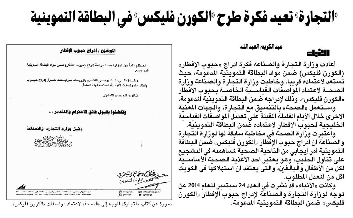 الزيادي Twitterren الأنباء وزارة التجارة تعيد فكرة طرح الكورن فليكس في البطاقة التموينية Kuwait