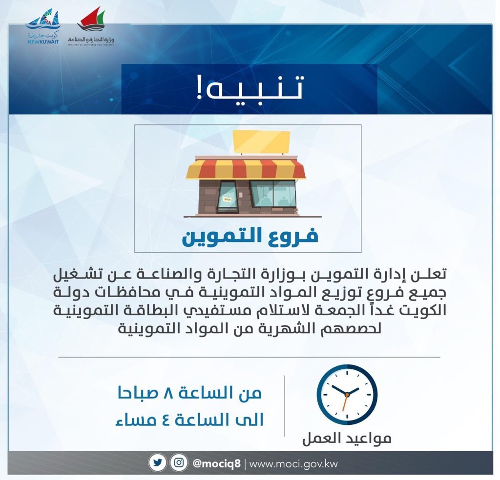 مفتش الكويت على تويتر وزارة التجارة الكويتية تشغيل جميع فروع توزيع المواد التموينية يوم غد الجمعة لاستلام مستفيدي البطاقة التموينية لحصصهم الشهرية من المواد التموينية الكويت تتصدى لكورونا Https T Co Fyl53seote